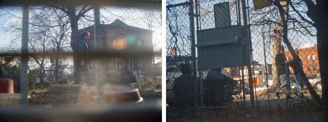 The people who are actually residents, such as my nextdoor neighbor Larry, are pretty friendly and normal. It???s the other people who are bothersome. There are many out-of-the-way places, such as the back alley right outside my bedroom window, for ne’er-do-wells to loiter and do their nefarious deeds. There is always drug activity; usually around suppertime, packs of five to ten youths begin to show up to smoke whatever it is they???re getting high on. They???ll sit on the steps of the apartment house across from my place; they???ll sit on the curbs of the parking spaces behind my building, because not all residents have cars so there are open, yet hidden, places to hang out. Why don???t they hang out on their own steps? Oh, because they don???t want their mothers to know what they???re doing. So we???re the lucky ones. I confess I???m kind of desensitized in general, which is not to say I won???t call 911 if I feel things are the least bit tenuous. I call quite often. In fact, two weeks ago I stopped some kid from breaking into Larry???s car (the one you see next to the two guys) at 1:30 in the afternoon. They throw their garbage anywhere and pee in the bushes. They don???t care; they just want some place to be illegal for 15 minutes. It???s the trade-off, I guess, for my desire to live in the city. I could move to a suburb, but that would be boring. Plus I???d have to drive my car to work.