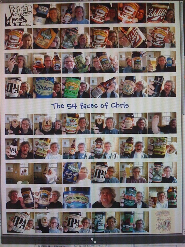 I never had any doubt that when he began telecommuting there would be afternoon beer involved. So on Tuesdays and Thursdays via iChat, it quickly became my custom to check in. It is not to see how his work is going. No, I always have the same one-word query for him: beer? I am rewarded with a photo of Chris and his beer, mugging for the camera. All afternoon I look forward to the moment when I can ask my question. There is no reason why I should enjoy these photos so much.
