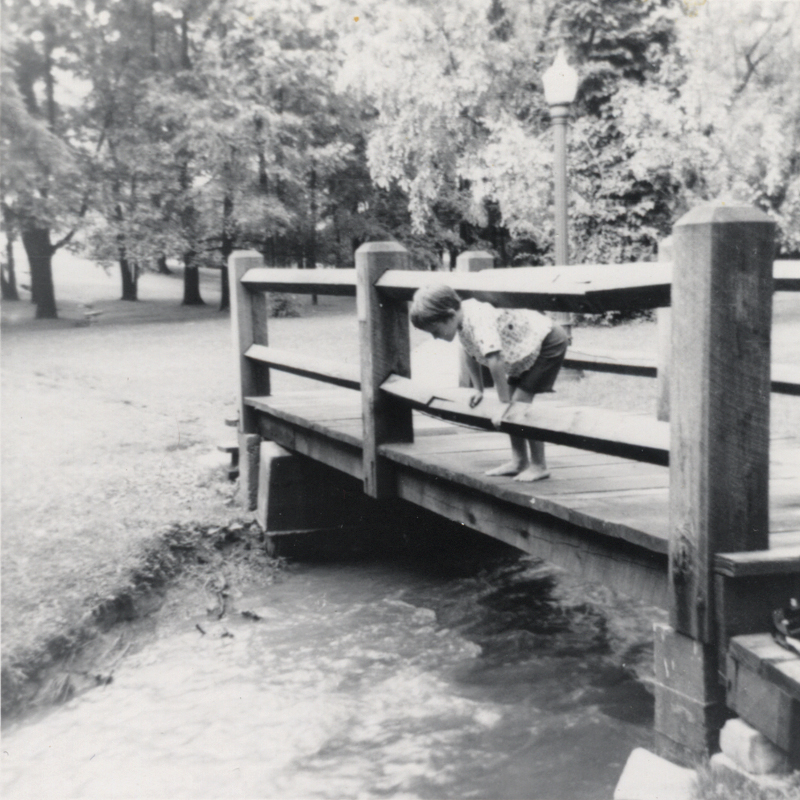 When I was a youngster, we summered at Indiana University while my dad worked summers only on his PhD. The campus featured a cute little stream where my mom and I spent a lot of time playing Poohsticks.