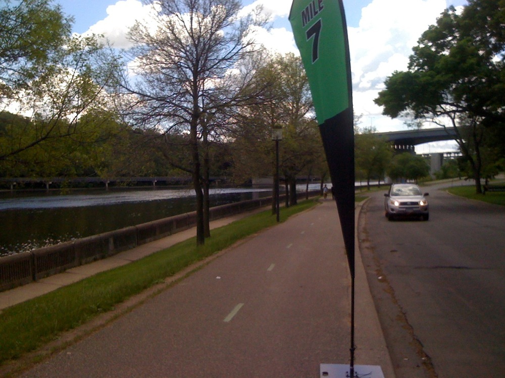 Photo 2, mile 1. Mississippi River. Apparently it was Mile 7 for the Minneapolis Marathon. Oh great, am I going to have to dodge joggers all ride?