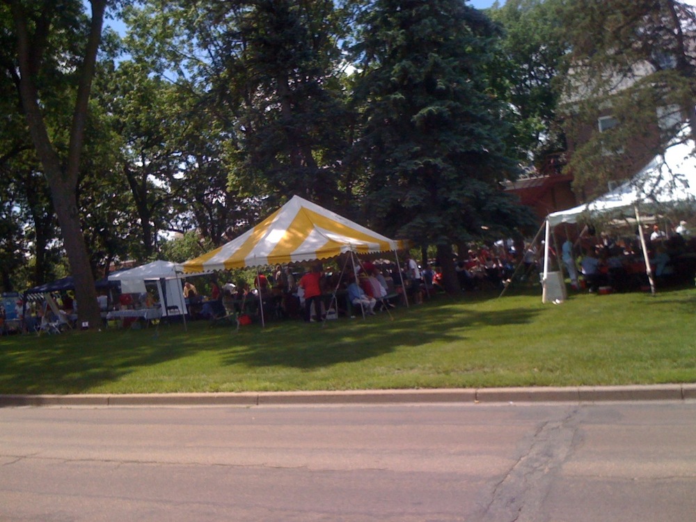 Photo 4, mile in-between. A party on the lawn at the American Danish Institute.