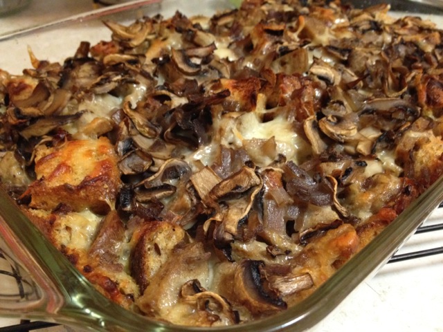 Combine milk and remaining 4 ingredients, stirring until smooth. Pour over bread-mushroom mixture in baking dish. Cover and chill at least 8 hours or overnight.