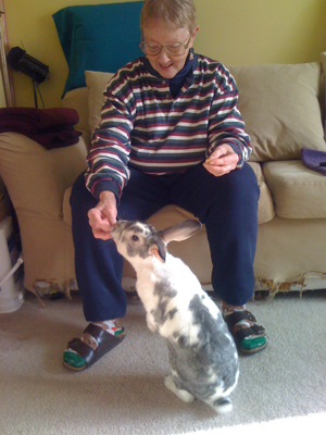 A few years ago, Robbin had a health incident which I think was a seizure of some sort, and one hind side was temporarily weakened as a result. He seemed to recover fully but in the last months it was his back end that failed, particularly on the side that had been affected by whatever that episode had been all about. As he aged his flexibility declined, which inhibited his ability to do everyday rabbity necessities, and his quality of life gradually diminished.