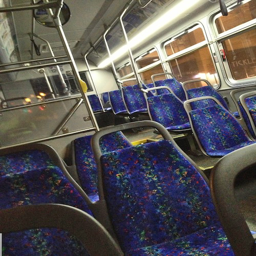 That was the oddest bus ride home—or anywhere—ever!—because I had the whole damned thing to myself! I have a 1.75 mile ride home. There were eight stops on the way, give or take. Nobody got on. I didn’t get off. Weird. This was at 9pm on a Friday evening. There should have been somebody else, even if only onebody else.