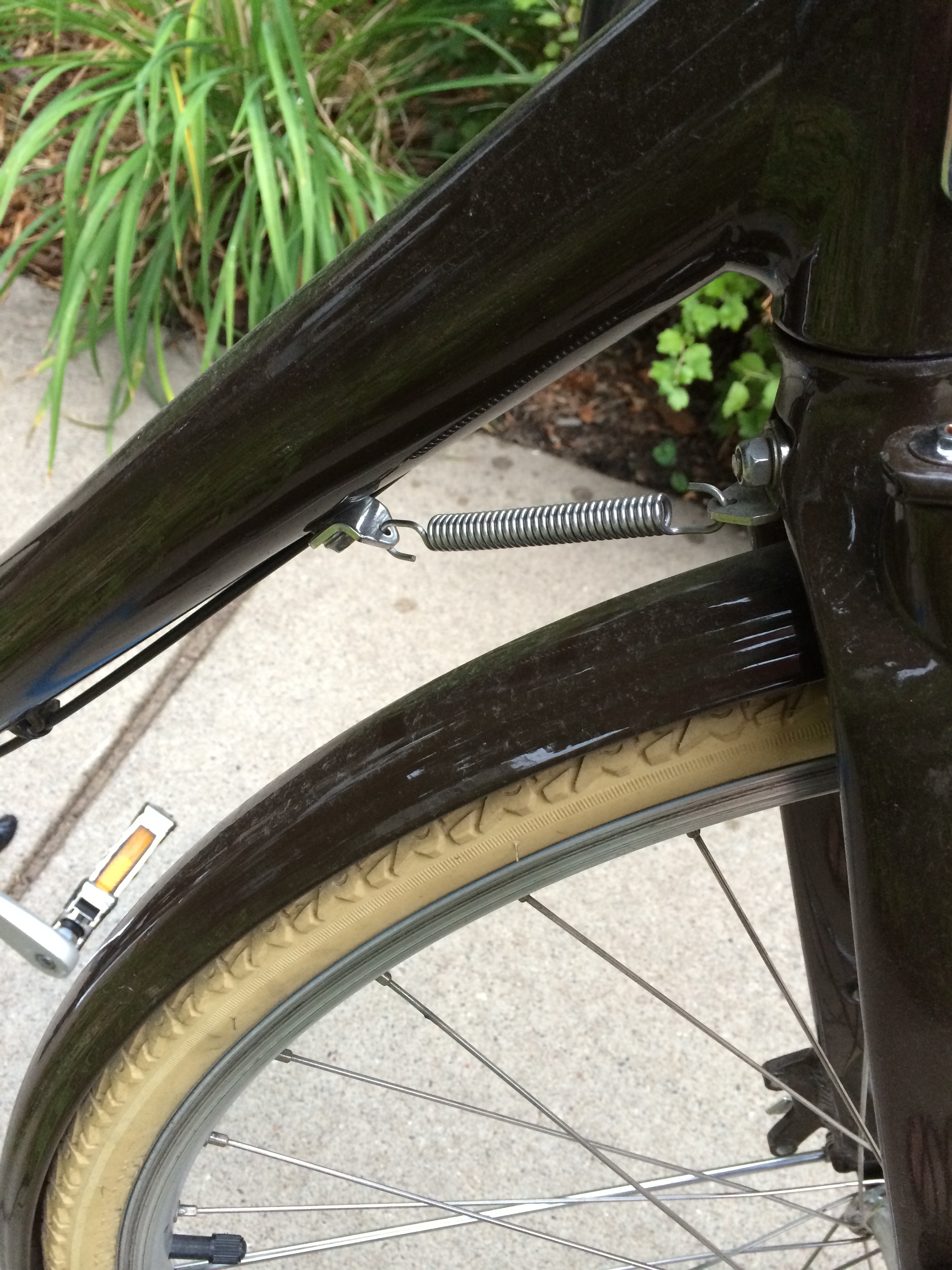 I’ve seen all manner of basket on people’s bikes. I am not a fan of this front-mounted, metal crate. It seems to be original equipment of this model.