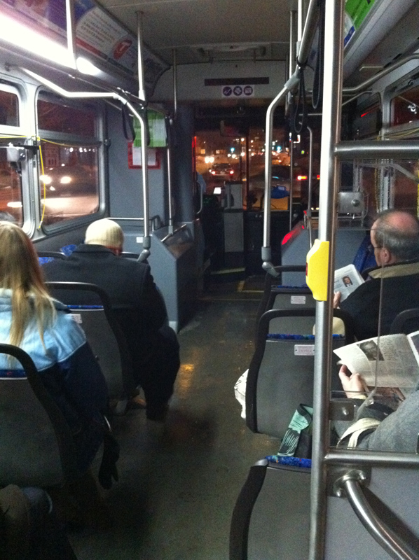 That was the oddest bus ride home—or anywhere—ever!—because I had the whole damned thing to myself! I have a 1.75 mile ride home. There were eight stops on the way, give or take. Nobody got on. I didn’t get off. Weird. This was at 9pm on a Friday evening. There should have been somebody else, even if only onebody else.