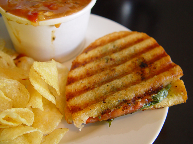 The grand winner in my personal sandwich preferences is the Caprese panini from a local outfit, D???Amico and Sons. I usually get the lunch special, which teams it with their equally delicious (but not sandwich) Tuscan chicken soup and my choice of a chunk of bread or potato chips. I choose chips. It???s my version of grilled cheese and tomato soup. Well, or theirs, I guess. I???m just in heaven when I eat this sandwich.