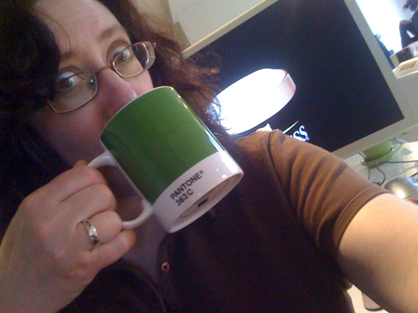 I fall into the latter catter-gory. Rob M, I confess. I have your Pantone swatch book. Let me refer back to old files on my computer. Nope, it’s been so long* that those files aren’t even on my current computer. No, I “borrowed” your swatch book when you entrusted the care of your feline companion to me for a longish Christmas trip to Green Bay, when I was still doing the quarterly catalog for cooking classes at Lund’s for my former freelance client. It was a one-color job and I got to pick the color. I used your swatch book to make the choice. Now you know. Obviously, you haven’t missed it much. Or else you’ve been just too nice to bring it up. You are a nice guy, but I suspect it’s more that you just haven’t needed it and so either didn’t even notice, or if you did, decided that it wasn’t important enough to mention. That’s because you went and became a fancy web designer guy at Yahoo!. The internet doesn’t care about the Pantone Matching System. If you ever need to use Pantone colors again, I’d be happy to return it to you. But may I note that it only goes up to PMS 587, with a few flourescents and metallics thrown in for good measure. The latest edition apparently features 2,058 colors. Your book is old news. The green featured in the call-out is 363, the color of the Pantone coffee mug that was part of the Christmas 2008 office gift to me. That color was carefully selected for me by our office manager who thought it reminded her of the color of the spinach soup that I sometimes make. She likes baby-shit-colored split pea soup, but for some reason, my green-greener spinach soup grosses her out. There’s no accounting for taste.*Omg, it was SO long ago that I was still working in QuarkXPress. What?