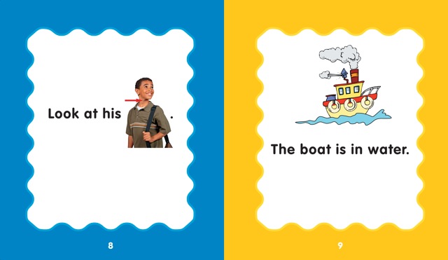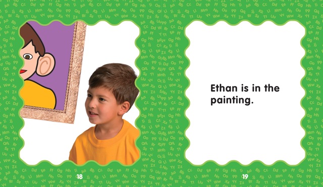 First Sounds was an A???Z series in which each book dealt with a single letter or letter combination and featured words beginning with those letters. First Rhymes also covered the alphabet, but via perfect rhymes. Both series were part of our Rebus Reader line, which meant that the first part of each book was given over to our version of rebuses for six-year-olds. The second parts of the books were simple stories illustrated by photo+clipart collages.