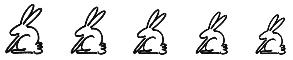 The final decision was the size. After I had drawn a bunch of the rabbits, I started to think that maybe it didn’t need to be quite that big. I printed out the final rabbit in a range of sizes and decided to go just a little bit smaller.