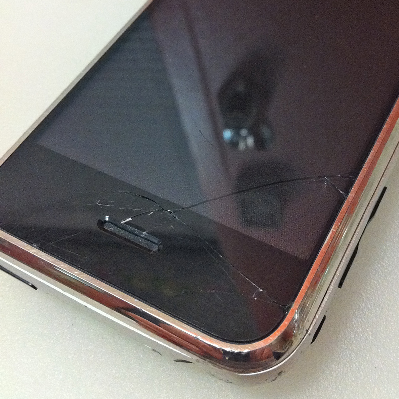 I had already flung my iPhone 1 to the ground several times and the glass had been cracked in a few places for quite some time. I had gotten smart and sealed the shatter at the bottom of the screen (pictured below) with clear nail polish. That area was obviously impaired so I gave it some attention.