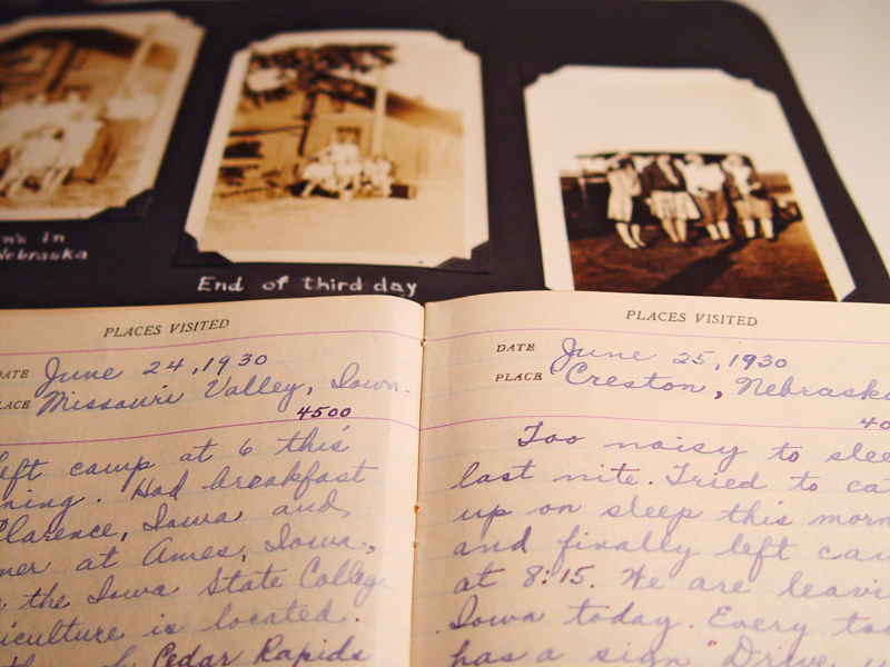 On June 23, 1930, my schoolteacher grandmother and three girlfriends set out on a road trip in a car named Hamgravy. They left from Janesville, Wisconsin, and spent two months driving around, with Grandma keeping meticulous records in a trip journal the entire time. There is an accompanying photo album.
