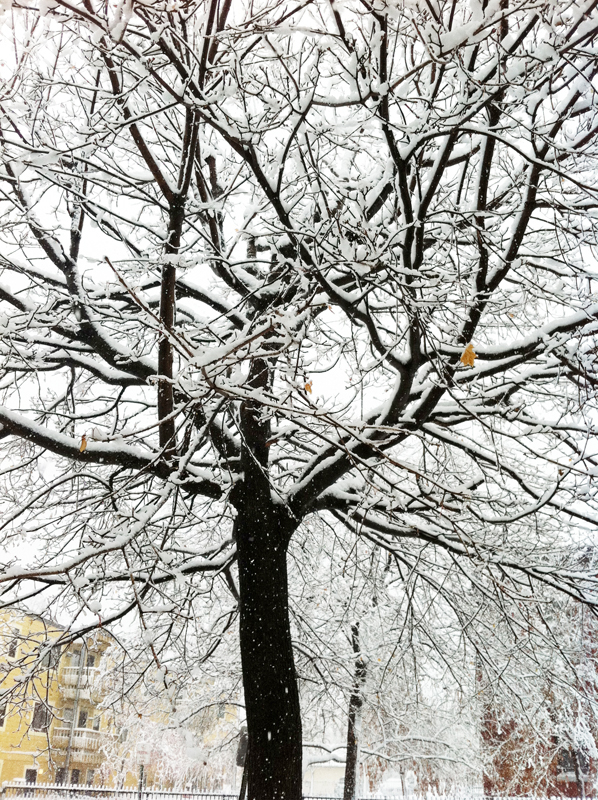 On the other hand, the snow provides for wonderful visions of Mother Nature at her most beautiful, like in the opening photo, or in the photo above, from this year’s first snow in mid-November. For a day, it was a gorgeous winter wonderland. This is the lovely maple tree that’s in my front yard. It’s a beautiful tree, but it does throw a little too much shade on my gardening efforts in the warm season.